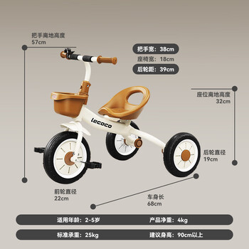 乐卡(Lecoco)儿童三轮车脚踏车小孩车2-6岁童车 瑞奇S1丝绒摩卡