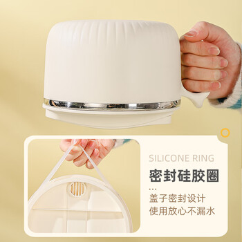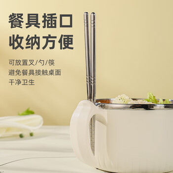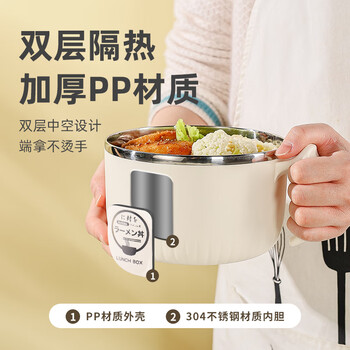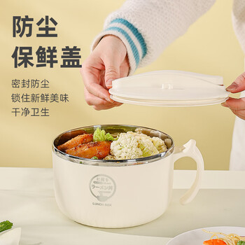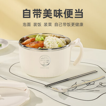 广意304不锈钢泡面碗配勺筷防烫学生饭盒上班族快餐杯米色1.4LGY8540