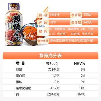 大逸昌 日本进口 照烧汁180g 日式料理 照烧鸡腿盖饭汁 酱油鳗鱼饭酱汁