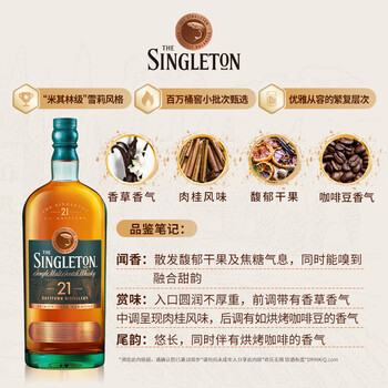 苏格登(Singleton)21年 苏格兰单一麦芽威士忌 洋酒 700ml