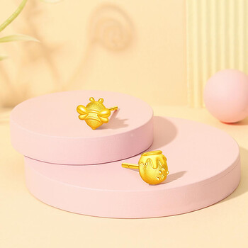 潮宏基蜜糖蜜蜂足金黄金耳钉CNC送女友生日礼物计价 蜜蜂单只款约0.6g