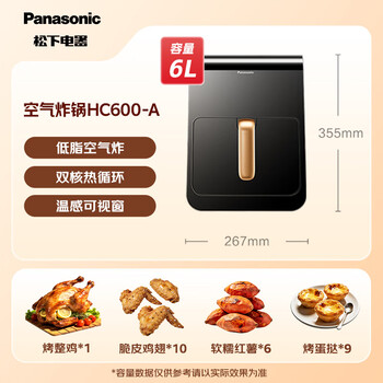 松下(Panasonic)多功能全程可视家用全自动无油免翻面6L大容量空气炸锅 NF-HC600-A