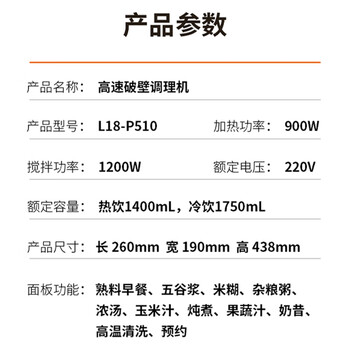 九阳(Joyoung)破壁机 超薄家用加热豆浆机辅食多功能五谷浆 1.75升 L18-P510【企业采购】【支持一件代发】