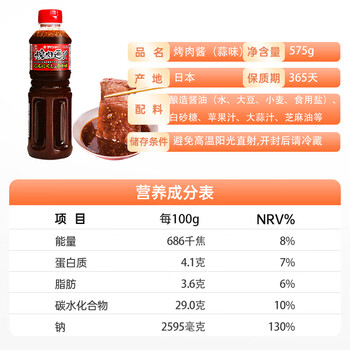 大逸昌 日本进口 蒜味烤肉酱 日式料理烤肉调味酱烧肉汁 腌料 蘸料575g