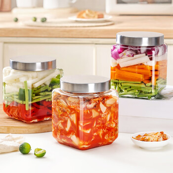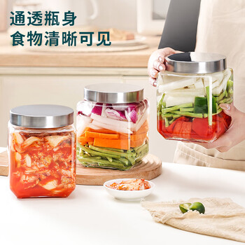 拜杰玻璃密封罐罐头瓶果酱酱菜零食收纳储物罐透明拧盖 三只装1200ML