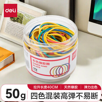 得力(deli)【超级爆款】50g彩色高弹力橡胶圈/橡皮筋/乳胶圈 财务办公用品 单盒装 3219