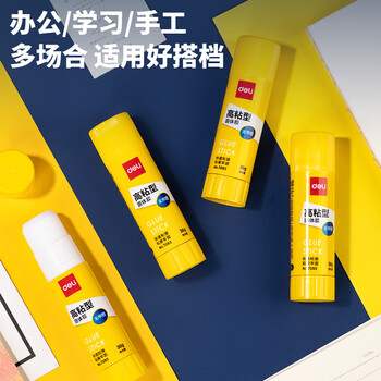 得力(deli)36g高粘度PVP固体胶水 无甲醛快干耐用胶棒 强力粘接 学生文具 4支装 办公用品 6372