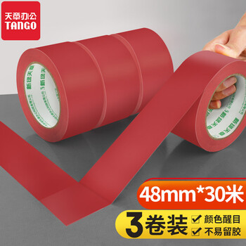 天章 (TANGO)红色警示胶带48mm*30米*3装装防台风工厂地板操作区地面定位标识胶带防水防风贴警示胶带不易留痕