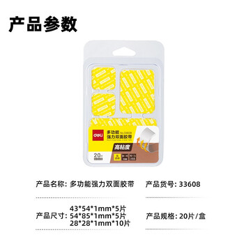 得力(deli)强力纳米胶带无痕双面胶 海报贴春联贴 水洗可重复使用 家用车用透明胶带 多规格20片装 33608