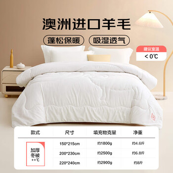 LOVO罗莱家纺 澳洲进口羊毛冬被子 6.8斤200x230cm白色