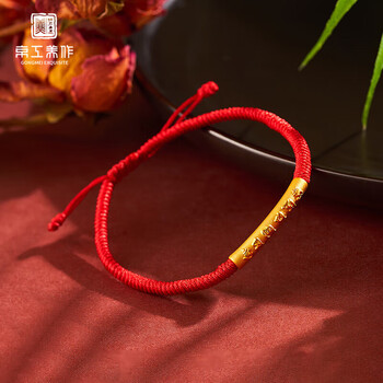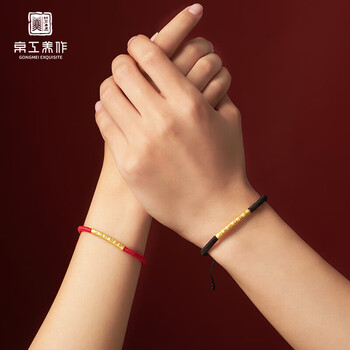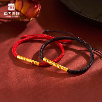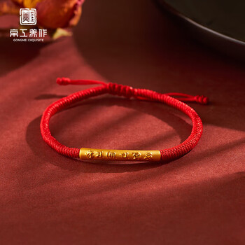京工美作黄金手链女足金六字箴言手串情侣生日礼物送女友红绳按克约1.12g