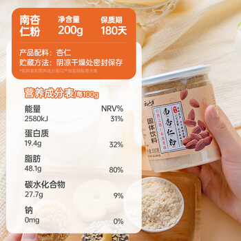 云山半南杏仁粉纯杏仁茶粉冲泡饮早餐代餐粉曲奇烘焙原料甜杏仁露霜200g
