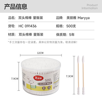 美丽雅双头棉签500只盒装尖头螺纹化妆消毒成人掏耳朵多功能耳勺棉花棒