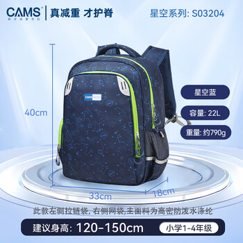 CAMS【幼升小】悬浮减重书包1-2-4年级男女儿童小学生轻便护脊S03204