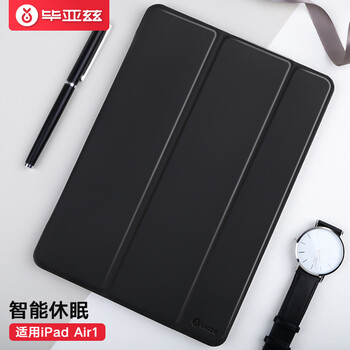 毕亚兹适用iPad Air1/2 9.7英寸保护套 苹果平板电脑5/6代通用保护壳轻薄防摔智能休眠三折支架PB13-黑色