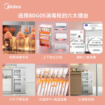 美的(Midea)消毒柜家用 餐具碗柜碗筷消烘一体机 小型立式 婴儿奶瓶 77L三层 高温二星级 80G05
