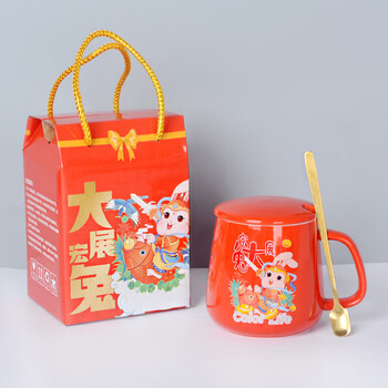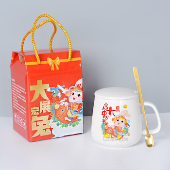 瑾明礼 大展宏兔-暖暖杯 陶瓷水杯办公咖啡杯 小礼品随手礼 白色/绿色//红色三色可选 礼盒装 30套/箱