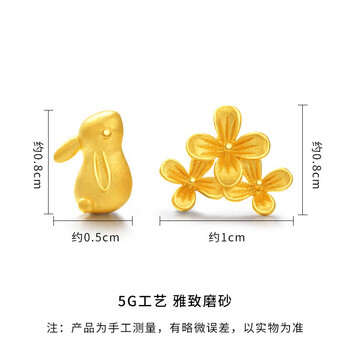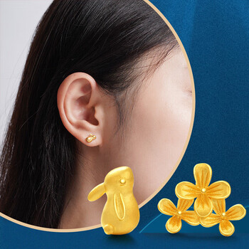 老庙黄金耳饰耳钉金桂玉兔耳饰送女友送老婆生日礼物