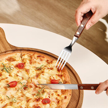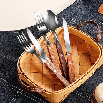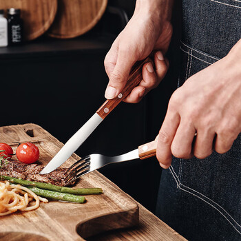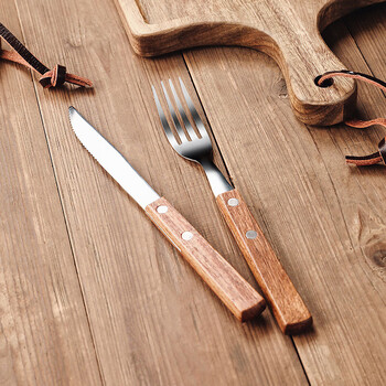 格娜斯304不锈钢牛排刀叉西餐餐具花梨木柄加厚餐刀叉子两件套组合套装