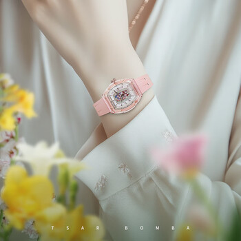 机械公爵(TSAR BOMBA)女士透明表壳贝壳小表盘搪瓷釉石英精美腕情人节生日送女友礼物