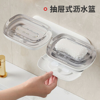 佳帮手肥皂盒壁挂式香皂盒免打孔浴室墙上卫生间可拆卸沥水置物架双层