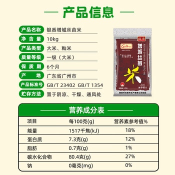 挂绿 增城丝苗米10kg/袋 银香