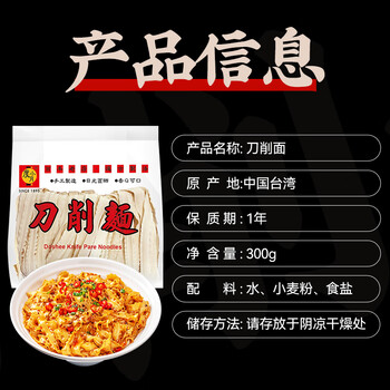 度小月(DuHsiaoyueh)中国台湾 手工刀削面300g 火锅挂面条特产早餐宽拉面条面片