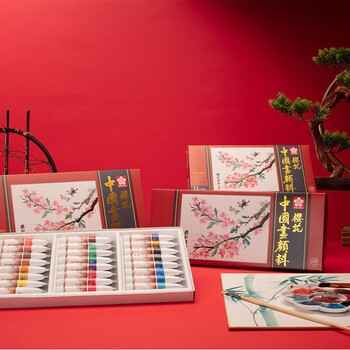 樱花(SAKURA)中国画颜料24色套装礼盒含金色12ml/支水墨画山水画初学者学生美院专业美术绘画画水彩颜料