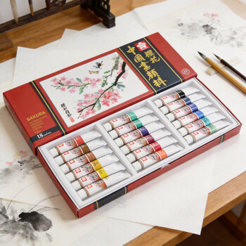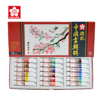 樱花(SAKURA)中国画颜料18色套装 12ml/支 水墨画山水画初学者学生美院专业美术绘画美术写生