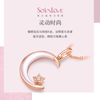 周大福SOINLOVE彩金星月18K金钻石彩贝吊坠女 VT193生日礼物