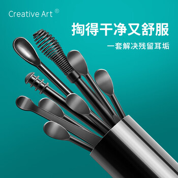 Creative art挖耳勺掏耳勺 掏耳朵神器螺旋采耳工具套装耳扣便携带收纳桶9件套