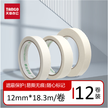 天章 (TANGO)美纹纸胶带美术美工绘图留白贴拼豆豆DIY 分色装修遮蔽美缝贴膜刷漆保护无痕12mm*20y(18.3米)12卷
