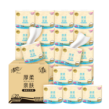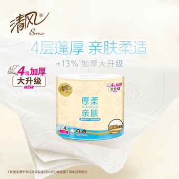 清风 (APP) 卷纸 厚柔系列4层110克*27卷卫生卷筒纸 纸巾(整箱售卖)卷筒卫生纸 加厚款 居家必备 母婴可用*1