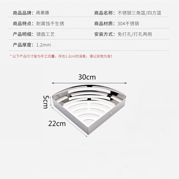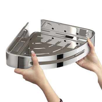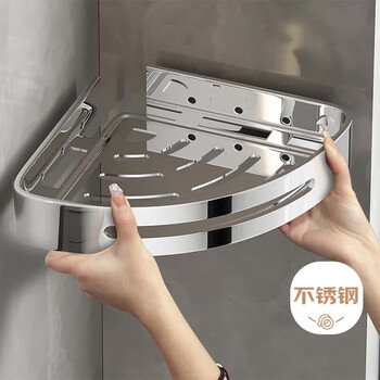 尚美德304不锈钢浴室置物架免打孔三角转角架卫生间置物架单层 简洁银