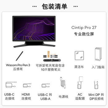 Wacom数位屏 26.9英寸手绘屏 4K120Hz触控电子绘画屏 数位板 手绘板 手写板连电脑 专业绘画板 DTH271