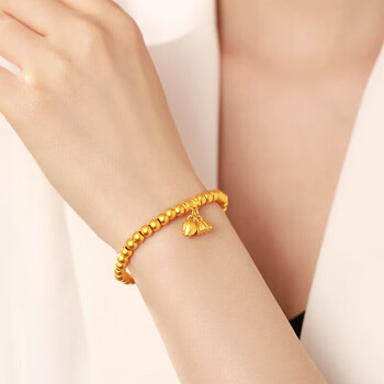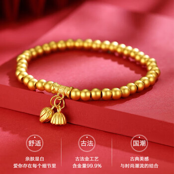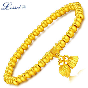 Lossot好运莲莲足金999黄金手链女3D硬金古法金珠转运珠手镯生日礼物
