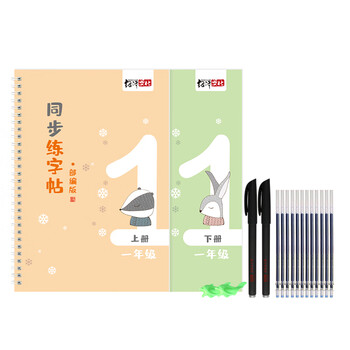 练字帖一年级上册X1;练字帖一年级下册X1;专用笔X2;(含笔芯)备用笔芯(6支)X2; 握笔器X2;