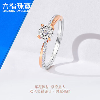 六福珠宝 18K金订婚求婚钻石戒指结婚礼物 15号-共8分/分色18K/约1.90克