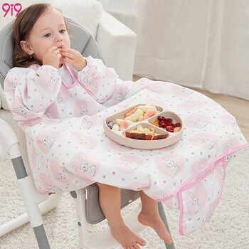 9i9儿童罩衣餐椅一体宝宝吃饭饭兜长袖防水防脏餐桌围裙加长A181兔