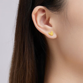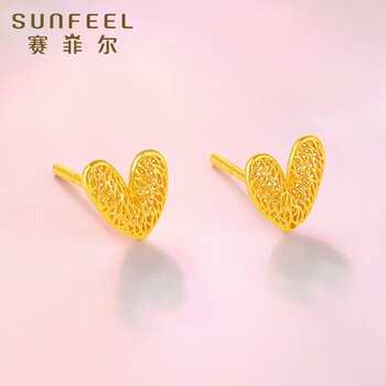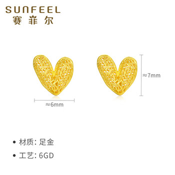 赛菲尔 黄金耳钉女款心形足金6GD花丝爱心耳饰 一对 约0.95克
