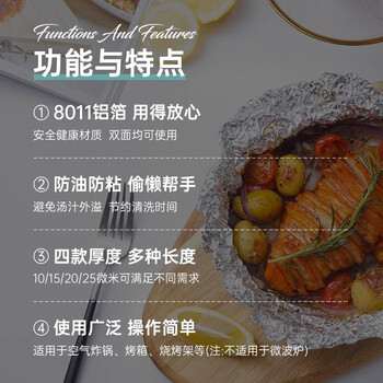 展艺加厚铝箔锡纸50m 空气炸锅烤箱烤盘防粘防油新年烘焙纸垫纸锡纸