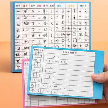 誉禾生字预习卡自粘款便签本小学生语文课前生字表拼音偏旁部首组词笔画练习笔记卡10行田字格 6179