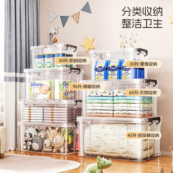 禧天龙直角收纳箱加厚大力士塑料衣物玩具搬家整理箱无轮 65L透明3个装