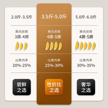 京鲜生马来西亚D197猫山王榴莲冷冻2-2.5斤保3房新鲜生鲜水果