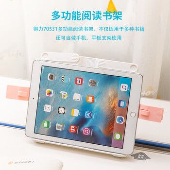 得力(deli)多功能阅读架 可伸缩折叠便携式书夹坐姿矫正阅读支架课本夹书文具生日礼物开学文具白色