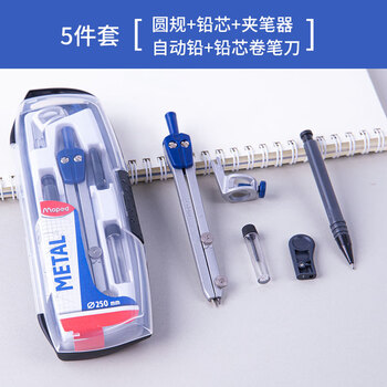 圆规*1;铅芯*1;夹笔器*1;自动铅*1;铅芯卷笔刀*1