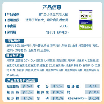 BOTH 烘焙狗粮 鸭肉梨 中小型犬 成幼犬粮 清火狗粮 试吃200g