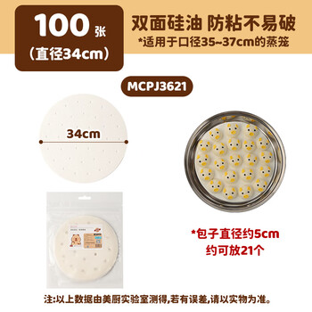美厨(maxcook)蒸笼纸包子垫纸蒸馒头纸笼屉纸一次性100张 直径34cm MCPJ3621