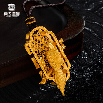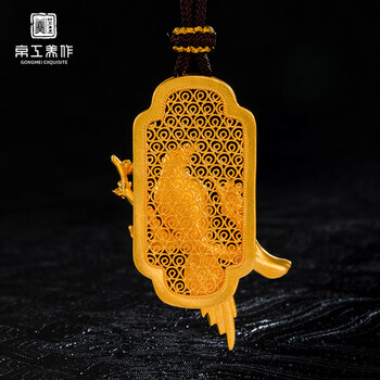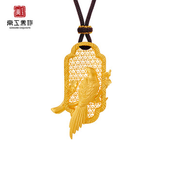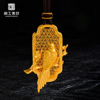 珠宝首饰---黄金---黄金吊坠京工美作(jing gong mei zuo)喜登枝头花窗吊坠