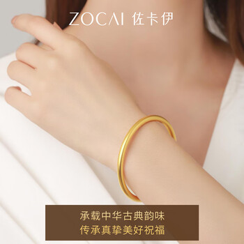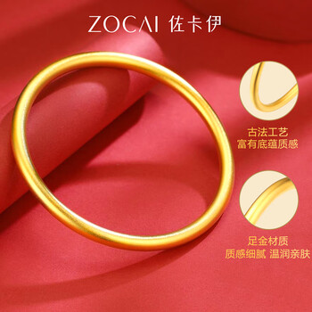 佐卡伊黄金手镯女999足金古法素圈手镯三金送老婆半实心 约10g 56#